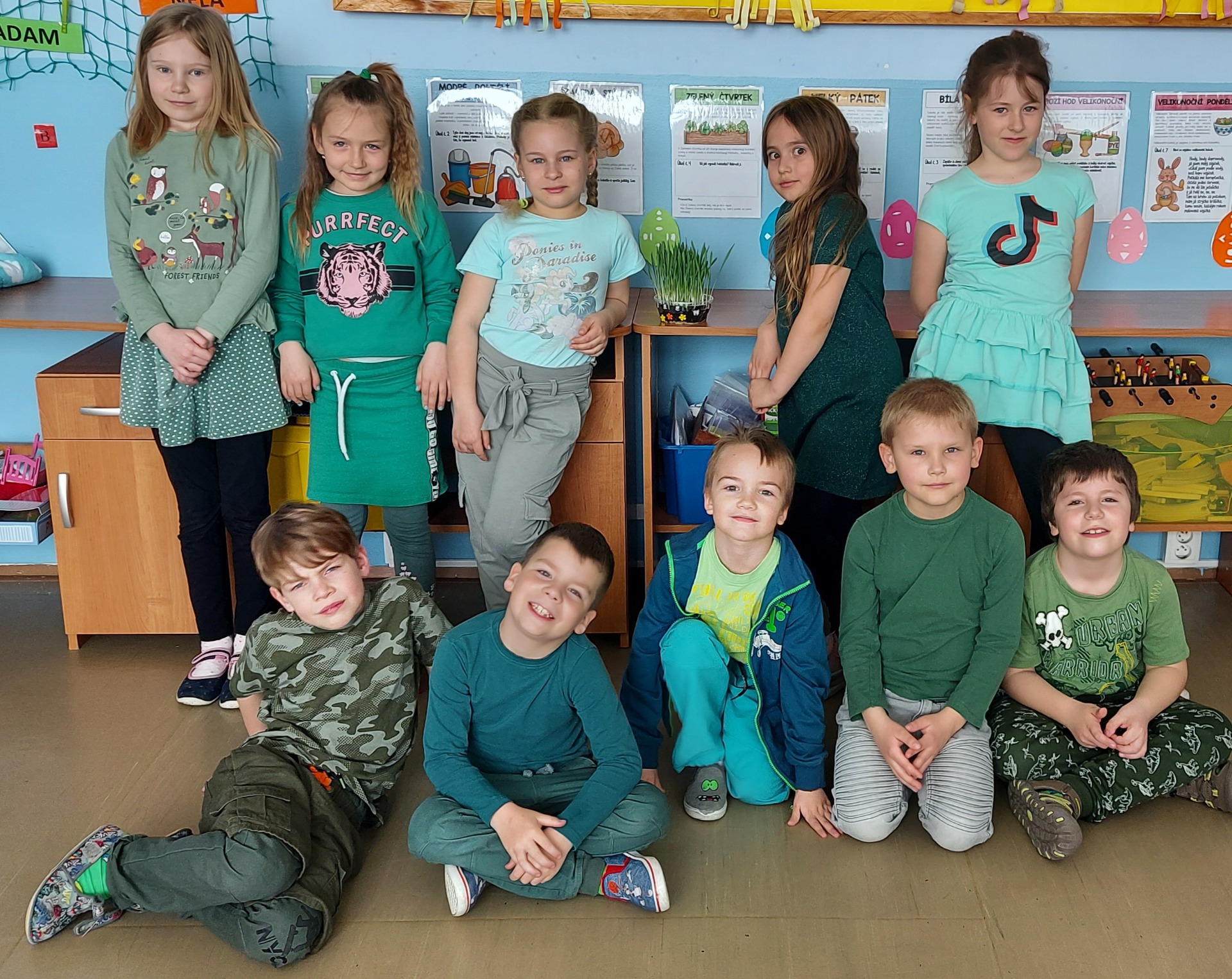 V týdnu od 11. do 13. 4. byla škola plná pestrobarevného oblečení a barev. V duchu velikonočních tradic se děti i paní učitelky oblékaly do barev podle dnů. Pondělí bylo oděno do barvy modré, úterý šedivé a středa je podle tradic nazývána škaredá, ale my jsme se nechtěli každou středu mračit a škaredit, tak jsme se oblékli do zelené barvy. Každý den jsme si připomněli tradice, které se udržovaly v českých zemích již od dob našich prababiček a babiček. Následující týden proběhlo vyhodnocení soutěže a předání odměn. Umístili jsme se na krásném 3. místě a získali sladkou odměnu.