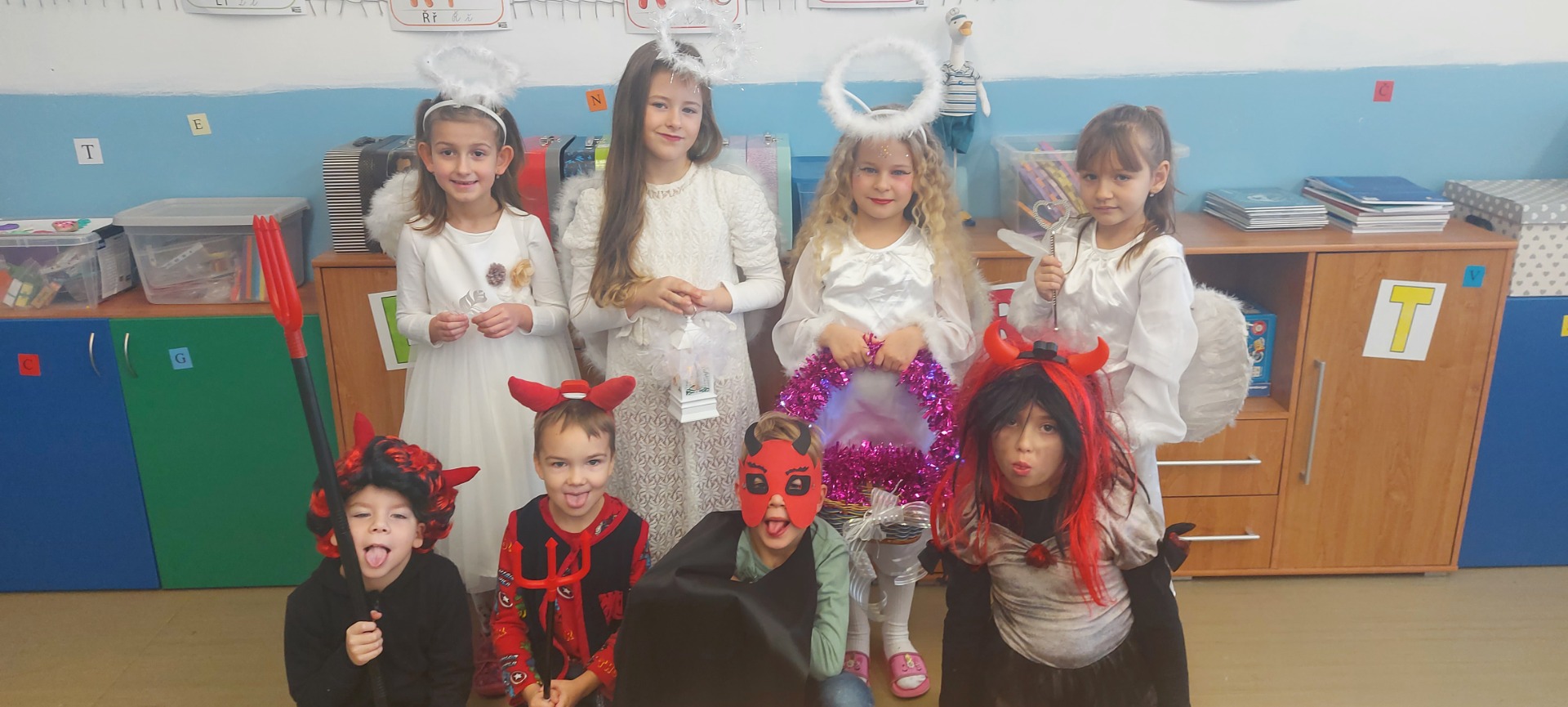 V tento den se vyučovalo jinak, čertovsky. Děti měly krásné masky a při vstupu do třídy se prokázaly čertovskou vstupenkou. Všichni byli natěšeni a vrhli se do plnění pekelných úkolů z matematiky, českého jazyka, ale také luštili křížovky a vyráběli papírového čerta. Nechyběly ani čertí hry jako Hod bramborou do koše, Koho odnesl čert a Papírová bitva. Za svou poctivou práci dostaly sladkou odměnu.
