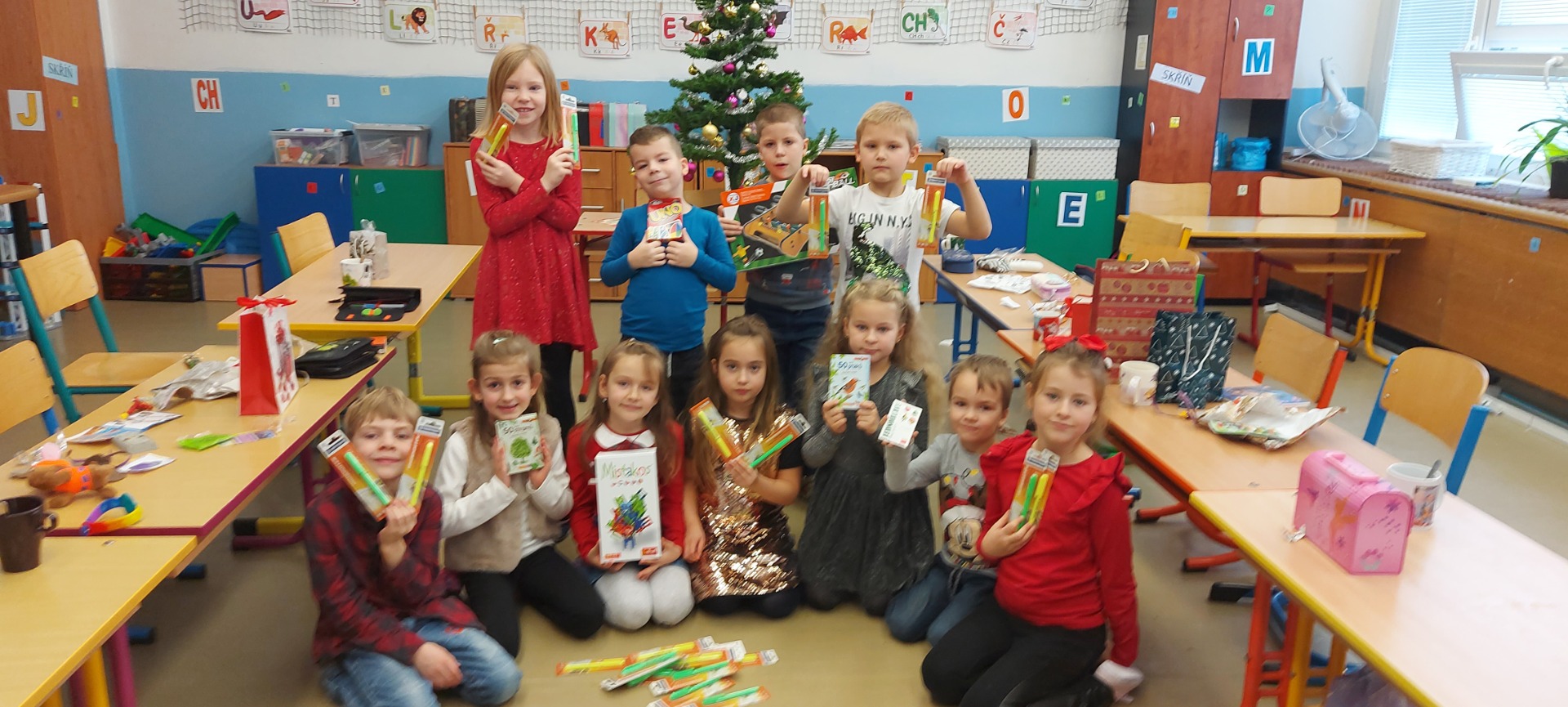 Ježíšek skutečně přišel. Každému přinesl dva zvýrazňovače a do třídy různé hry, které jsme si hned vyzkoušeli a budeme je hrát ve volných chvilkách.