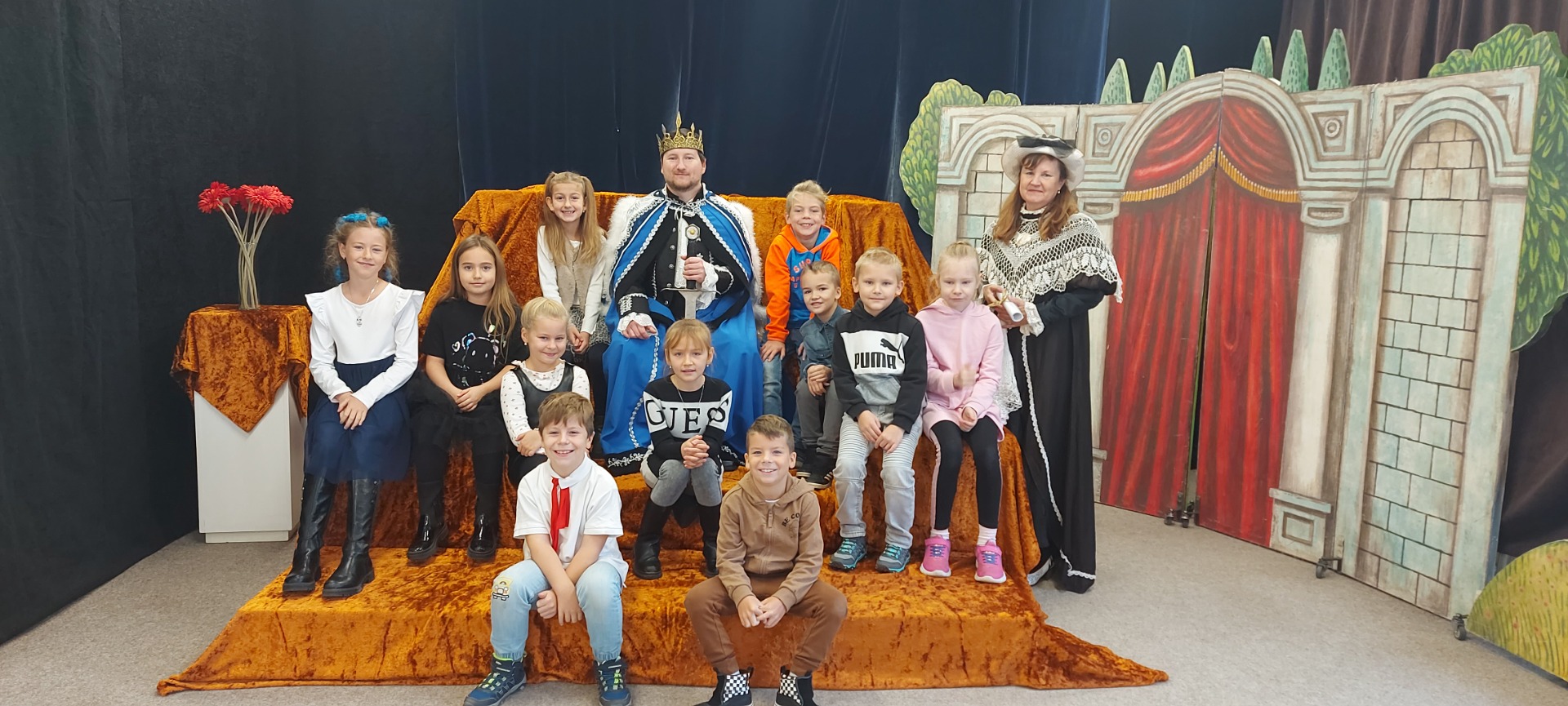 V recepci nás přivítala dvorní dáma, která nás provázela celou akcí. Seznámili jsme se s prostory a fungováním knihovny, museli jsme splnit čtenářské úkoly a složit slib čtenáře. Teprve pak nás dvorní dáma představila králi, který nás slavnostně pasoval na čtenáře.