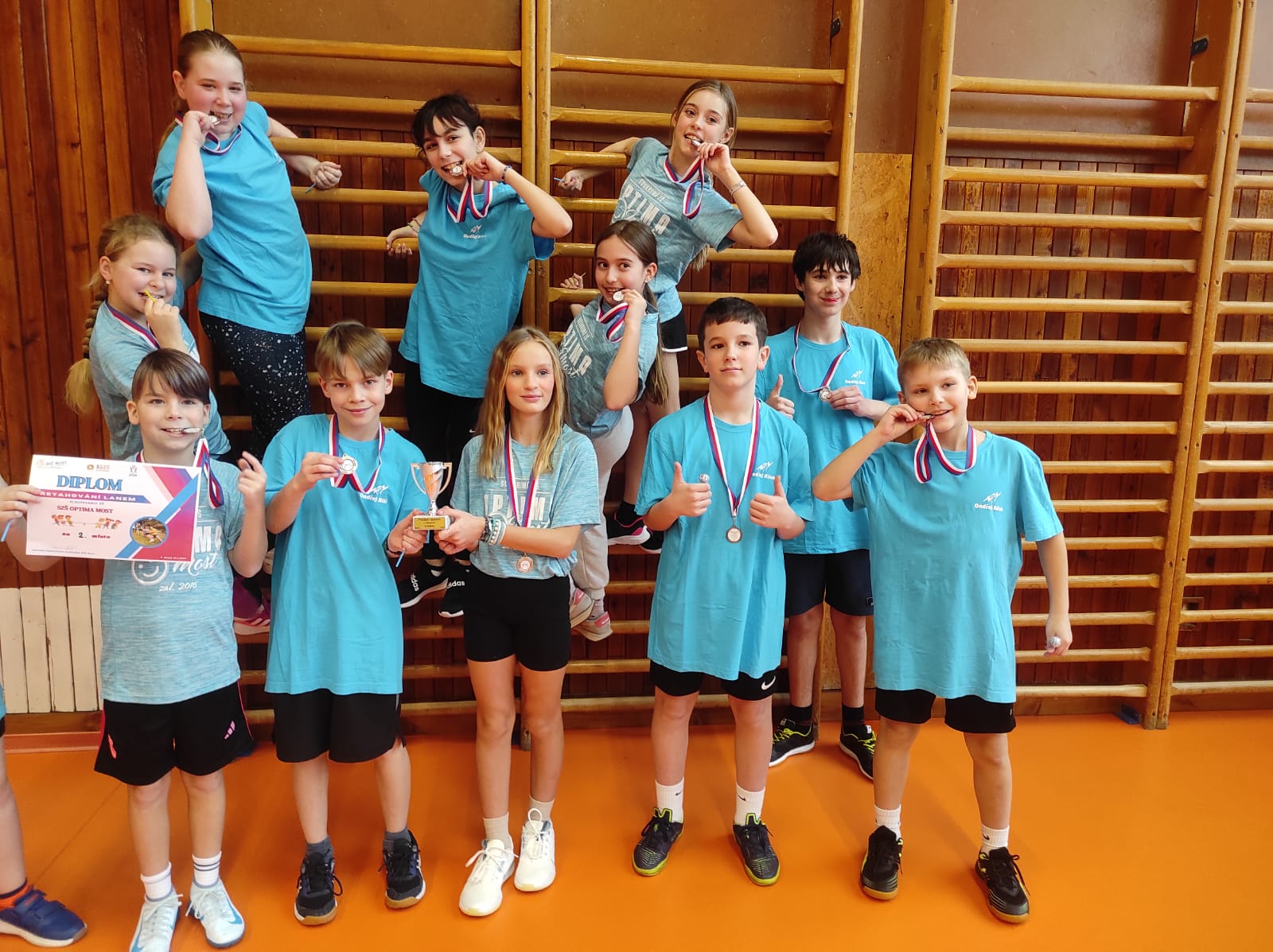 Dne 12. 2. jsme se zúčastnili soutěže v přetahování lanem. V jedné tělocvičně bojovaly čtyřčlenné klučičí týmy a ve druhé dívčí. Hrálo se stylem každý s každým, takže nás čekalo šest soubojů v každé tělocvičně. Všichni se opravdu moc snažili, a tak nás na samém konci čekalo při shodnosti bodů rozhodující kolo o druhé místo. To jsme nakonec v napínavém souboji vyhráli a odnesli si tak stříbrné medaile a pohár.