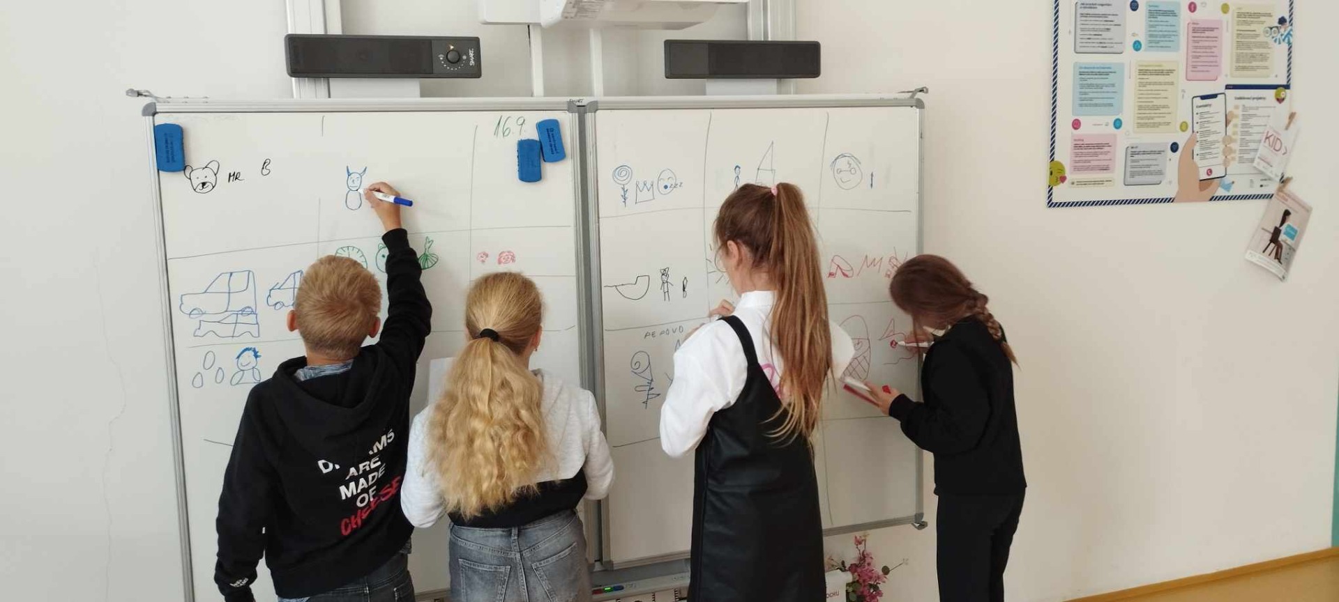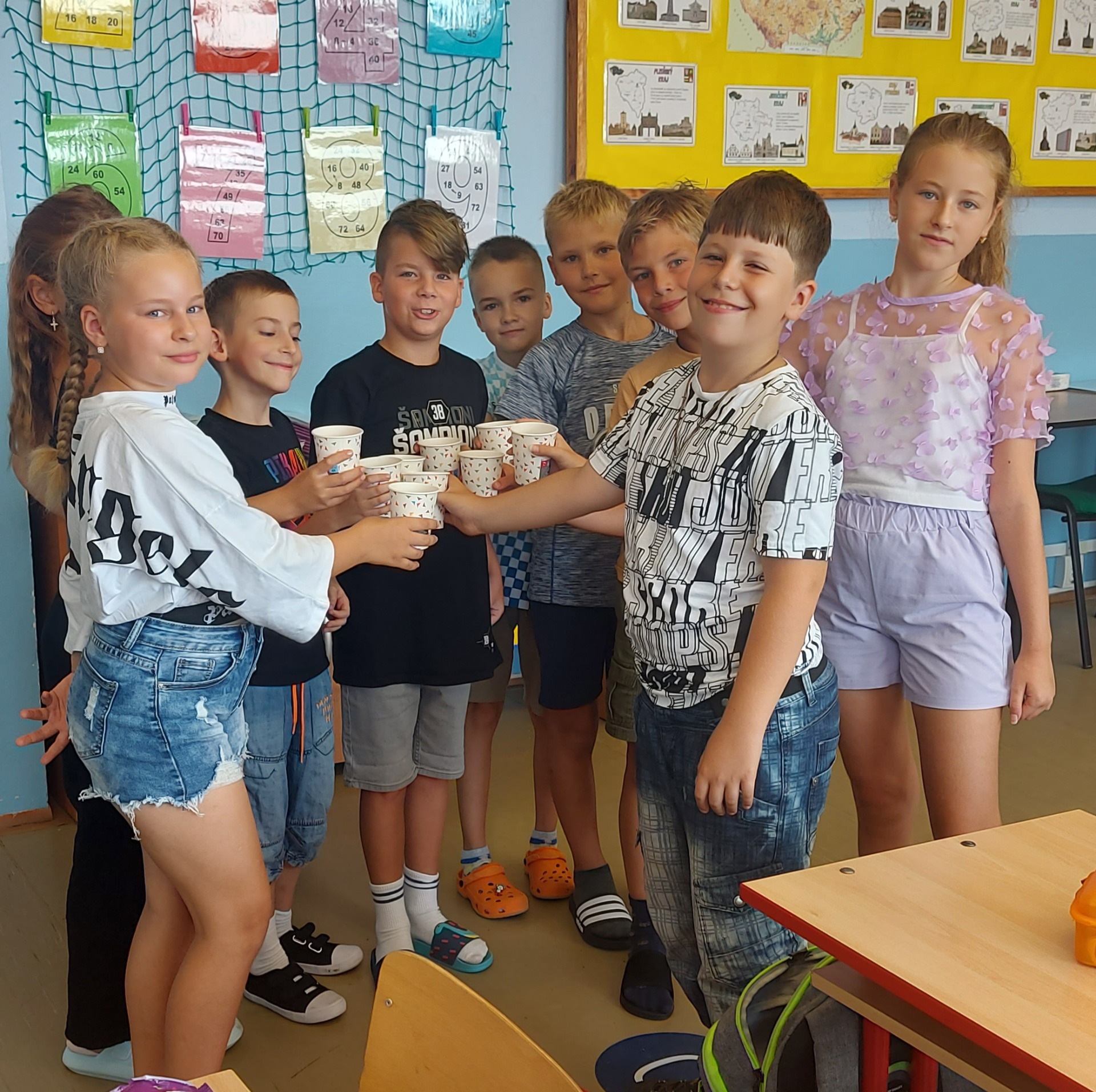 Letos máme poprvé předmět informatika, jestli jsme si mysleli, že se budeme učit jenom na počítacích, tak jsme se trochu mýlili. Začali jsme trochu vtipně a to šifrou. Náš úkol byl připravit si zašifrované pohádky, ktéré jsme potom nakreslili na tabuli a postupně je hádali. Všem se nám to povedlo a všechny jsme uhodli.
